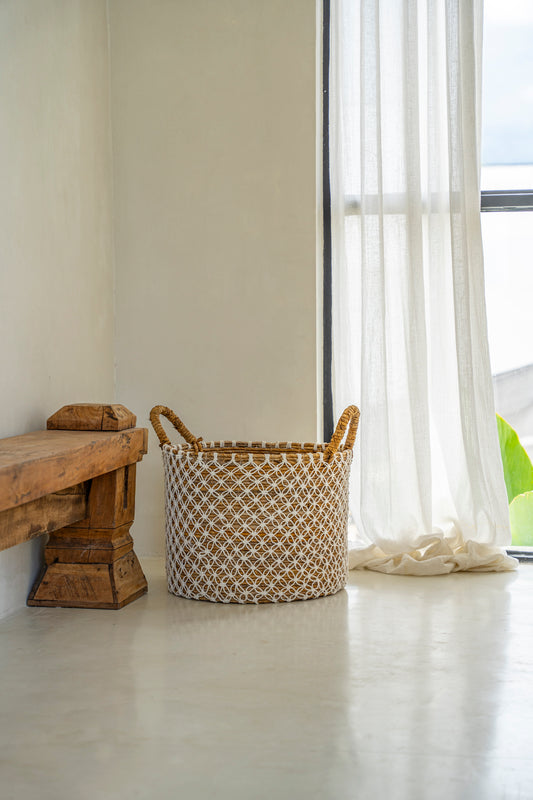 Binnenkort beschikbaarMand+Handvat Bol Bamboe+Touw Wit Small