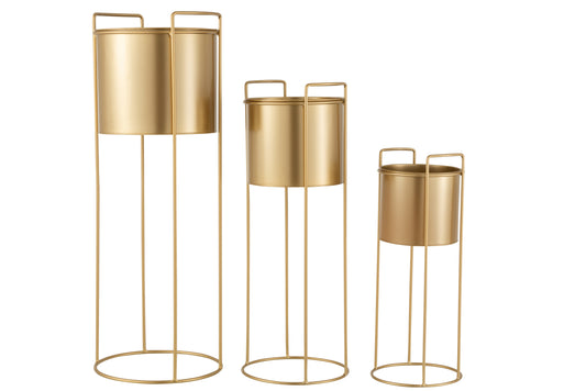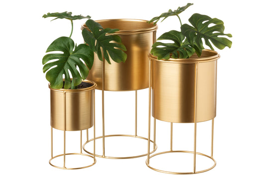 Set Of Three Flowerpots On Foot Metal Gold