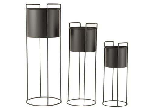 Set Of Three Flower Pots On Foot Metal Black
