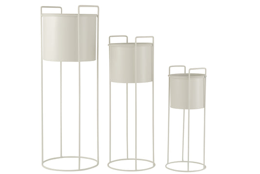 Set Of Three Flower Pots On Foot Metal White