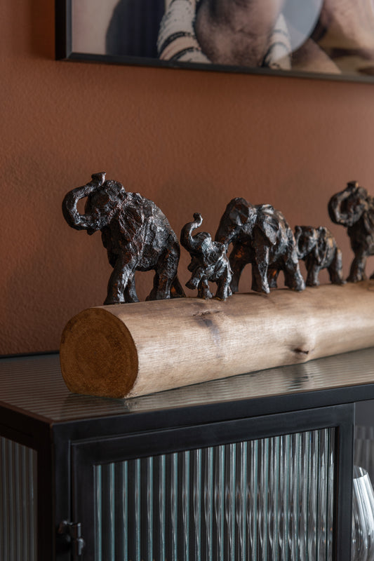 Figure Elephants Row Mango Wood Aluminum Bronze