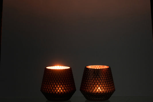 Tealight Holder Cari Glass Copper Large Assortment Of Two