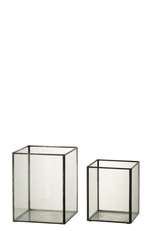 Windlight Nordic Glass Matt Black/White Medium Assortment of 2