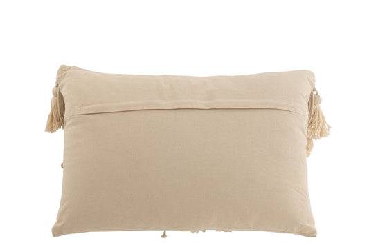 Cushion Pompom Macrame Rectangle Cotton Beige