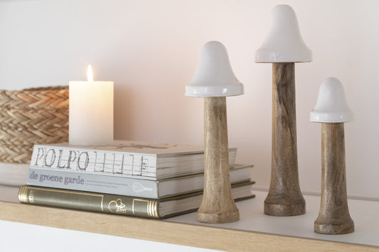 Set Of 3 Mushrooms Thin Wood Natural/White