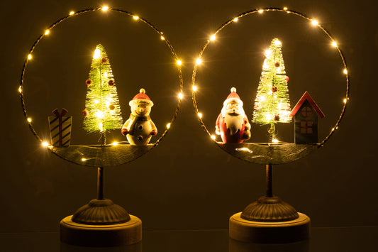 Cirkel Op Voet+Led Kerstman/Sneeuwman Hout/Metaal Mix Assortiment Van 2