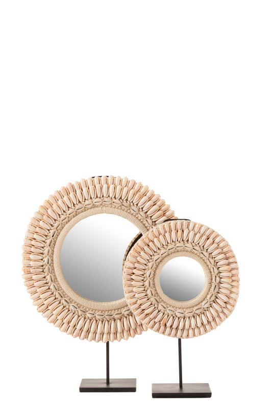 Miroir Alan Rond Coquillages Raphia Naturel Large